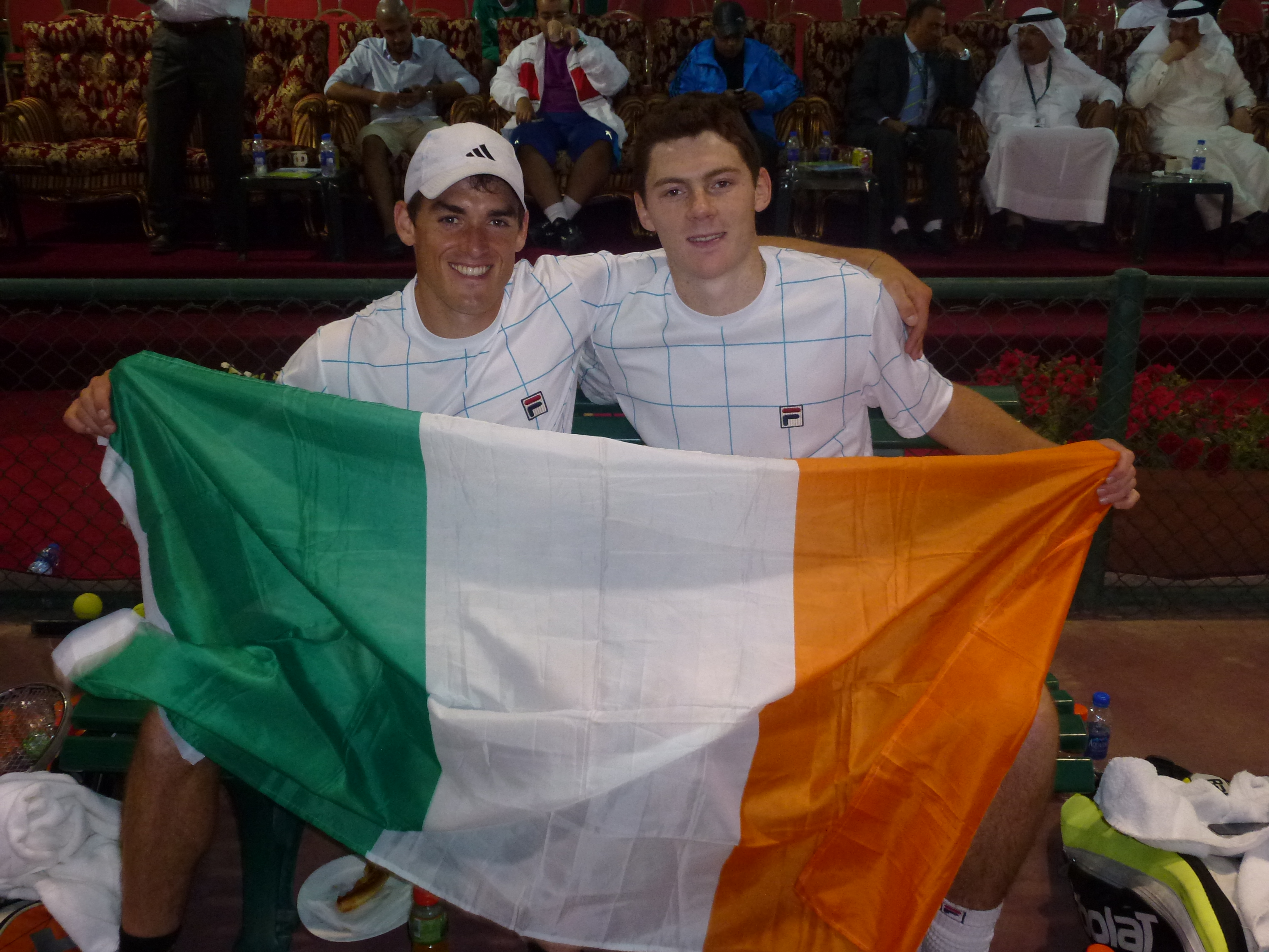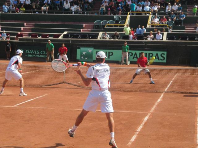 Tied at 1 all and coming into the doubles match on Saturday, myself and Sam both knew how big this match was. We knew it would be the match that turns the tide in our favour and would put more and more pressure on the Egyptians going into the last two singles on Sunday. We were rooming together this week and the night before, we went over every last detail to take these guys down. We came out far too fired up, almost like we were going into war and it didn’t serve us well. Our opponents were focused and playing with conviction while the two of us were a little caught up in the emotion of the occasion. We settled down and just about won the second set 7-6, I believe this set was one of the most important sets of the Tie as it gave us the belief to win the match as well as discouraging our opponents at the same time. Sam and I started to relax and really play freely for the next 2 sets, we were the better team and we knew it. Come on! 2-1 Ireland now, only one more point and this Tie is ours!